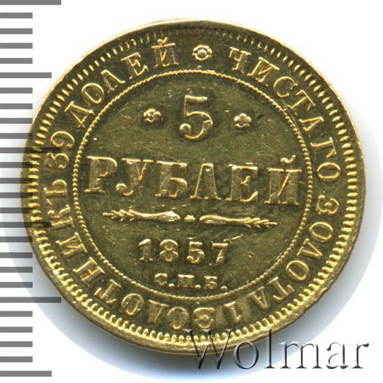 Александр II. Монета 5 рублей 1857 года. Состояние VF.
