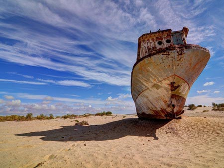 По водам моря-пустыни когда-то ходили морские суда, которые сегодня стоят в порту г. Муйнак на знаменитом «кладбище кораблей». Возможно им никогда уже не суждено бороздить волны Арала. Так они и стоят, брошенные. Ржавеют и погружаются в небытие..